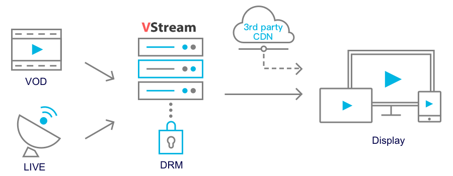 Support Live, VOD and near-live workflow (time-shifting, catch-up, cloud DVR) from a single platform.